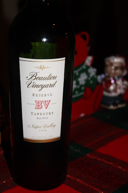 Christmas night is spent with our dear family friends the Behrs. Tom and Carol have been a integral part of my culinary growth from an early stage. Carol taught me all about French wine when I was a senior in high school and had to complete a project for my AP French class. An avid collector, Carol has built a beautiful cellar and I have been lucky enough to sample her treasures. Christmas night was no exception and she started us off with this 1994 Tapestry Reserve from Beaulieu Vineyard in Napa. The aroma made me think of rich chocolate.