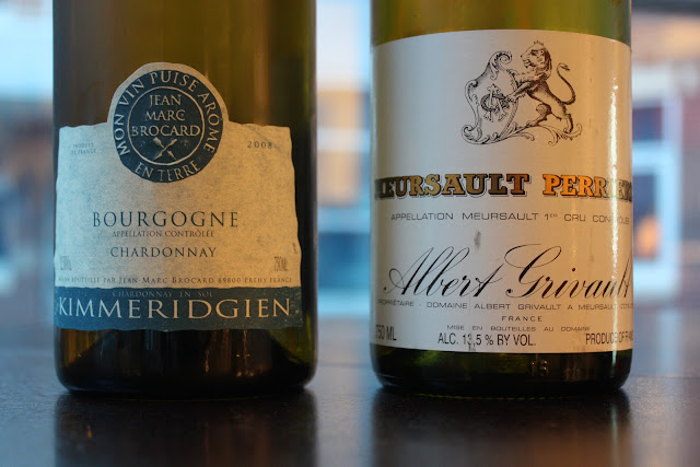 It was agreed that I would seek out a nice, basic Burgundy, something that best represented what White Burgundy was supposed to be in a simple, affordable form. With the help of the incredibly knowledgable staff at Westport Whiskey and Wine, I selected a 2008 Jean Mar Brocard Kimmeridgien White Burgundy, retailing for $21. Matt spoiled me rotten and presented a 2008 Meursault Perrieres White Burgundy, falling more along the $90 price spectrum. We began with my bottle, a blend of chardonnay grapes from throughout the Burgundy region. No one specific area or vineyard was highlighted, just an overall sampling of what Burgundy does best. We were met with a nose full of peach and apricot, mineral overtones punctuating the scent. That familiar, welcome green apple note presented itself at first sip and a tart, lime-focused citrus followed suit. The finish was relatively short but the acidity was balanced. It was a wonderful bottle and has earned a quick spot near the top of my ‘go-to’ list. Our second pour brought a beautifully round and complex demonstration of what White Burgundy is when it is put on a pedestal. Focusing on the town of Meursault, we are now narrowing our Burgundy sights and settling in on one specific vineyard, tasting a wine that is a product of fussed-over, protected vines – vines that offer up grapes with insanely smooth and complex parts. Drinking the Meursault was like sampling the wonderful Kimmeridgien after it had been revamped and cellared for several years, even thought they were from the same harvest year. The green apple had turned to more of a red delicious variety, the pleasant tartness mellowed by a deeply rich mineral quality. A creaminess presented itself, a buttery banana characteristic that kept me coming back for more.