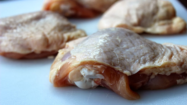 - four chicken thighs, bone-in, skin-on