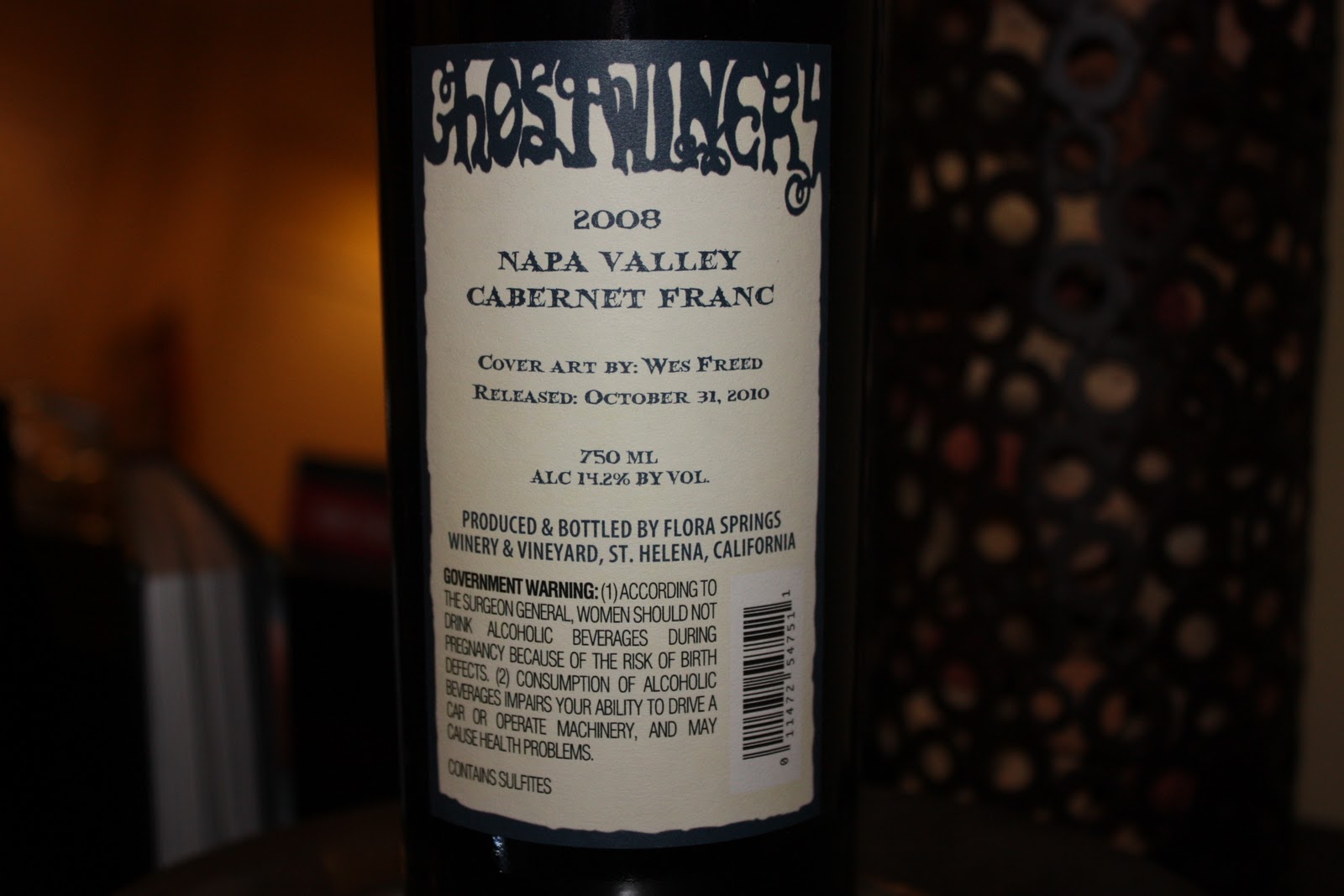 How cool is that label? This bottle is from Flora Springs, an incredible winery in Napa Valley. This particular bottle is a special release they make every October called their ‘Ghost Wine’. The October 2010 selection is a beautiful Cabernet Franc. The top is sealed in black or orange wax rounding out this spooky creation. Flora Springs was our first stop when we toured Napa’s vineyards and it was our best overall experience. Our guide couldn’t have been nicer. He was approachable and didn’t laugh at our many questions. We learned that Flora Springs is one of Napa’s ‘Ghost Wineries’, meaning that the winery itself has been in existence since before prohibition and the great depression. While most businesses were shuttered forever after these two historical events, a select few wineries were reopened and brought back to life, the ghosts of the past still roaming the vines. If you find yourself in Napa, Flora Springs should be your first stop – a great way to jumpstart your adventure. And try their Cabernet Franc while you’re there. It is a bit musty from the oak but very silky and velvety. A pleasure to drink and easy on the palate. Rich with history, Flora Springs makes a delicious lasting impression.