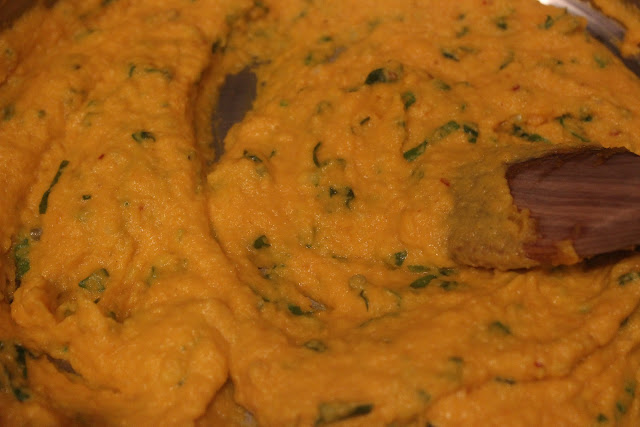 You want a thick but slightly thin purée, something that will act as a hearty but silky sauce for the pasta. The water from the pasta is a wonderful and surprisingly flavorful ingredient, filled with starch collected from the noodles. Begin by adding one half cup of the pasta water to the purée. This was enough of a thinning agent for me but feel free to add an additional quarter cup if you feel the sauce needs to be thinned out even more. Taste for seasoning and keep over medium-low heat, stirring often.