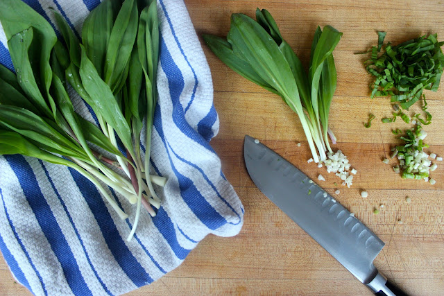 - seven to ten ramps, both white and green parts cleaned and chopped, yielding one half cup